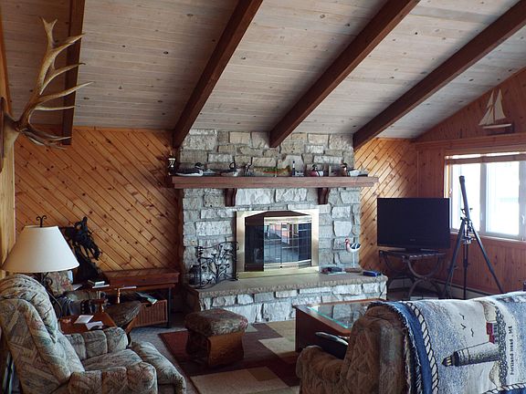 Rent this fully furnished home located on Lake Erie with your own private beach. The home features an open living area with a large stone fireplace, large six chair dining table, fully equipped kitchen, vaulted ceilings and a huge rec room with pinball, air hockey, foosball and a large HD TV. The home is furnished with antiques original wood carvings, included hand carved bed frames. Enjoy a view of Lake Erie islands and sunrises and sunsets from your balcony overlooking the lake.