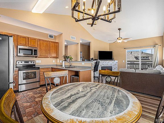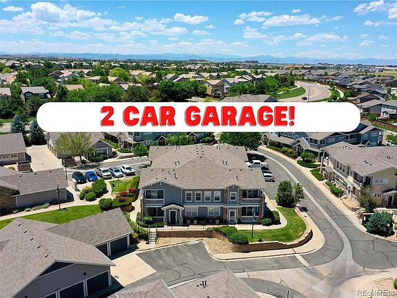 2 CAR GARAGE!! Townhome style condo! 2 bedroom, 2 bathroom, Corner Unit in STONEGATE!!!!!!! No one above!!!!!!!! Stunning VAULTED CEILINGS in every room! Enjoy Stonegate neighborhood and community RESORT STYLE amenities, walk to the community outdoor pool and clubhouse, access to BOTH Stonegate AND Stonegate North pools, parks, tennis and pickle ball courts!!! Incredible access to the Denver International Airport, Park Meadows Mall, Lone Tree, Denver Tech Center. New Trader Joes Shopping Center, Costco, Lifetime Fitness. This second floor condo is updated with wide plank flooring, light fixtures, new electrical outlets and switches, new microwave, upper and lower kitchen cabinet lighting, stone accent on the fireplace, updated water heater 2016. Open floor plan living, enjoy your private outdoor covered balcony, with additional storage closet! Spacious living room with room for large sectional, dedicated dining room for enjoying meals and entertaining, kitchen features stainless steel appliances, pantry cabinet, lots of countertop space, raised bar for additional seating. Secondary bedroom with 2 closets, currently being used as office/home gym. Full bathroom in the hallway with tons of additional cabinet storage!!! PRIMARY SUITE!!! Private primary suite features walk in closet, vaulted ceilings, and en suite 5 piece bathroom!! Lots of visitor parking available throughout the community. http://www.9306amison.com/ for 3D tour