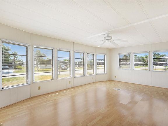 Fantastic seasonal living opportunity! Spend your winters just 6 miles from the beautiful Gulf beaches of Bonita Springs-Barefoot & Wiggins Pass... OR just stay all year and enjoy all that living in SWFL has to offer. This home is located in a 55 and better community that is non-gated, but deeded and meticulously maintained. Imperial Harbor is managed by on-site staff and has a full calendar of events as well as bocce ball, horseshoes, community pool, and shuffleboard. Offering over 1,000sf of living space in a great room design and featuring laminate flooring throughout, a huge Florida Room with tons of natural sunlight, formal dining area with built-in cabinetry, galley style kitchen with wide aisle space & pantry, an enclosed carport area with laundry/storage room, and an open carport with enough room for 2 cars. Situated on a deep lot with a spacious front yard, wide & long driveway, and a backyard that has enough room for a grill station if desired. Wonderful Bonita Springs location- in just a short drive you can take advantage of the best shopping in all of Southwest Florida - Coconut Point, Miromar Outlets & Design Center, Gulf Coast Town Center, & Naples 5th Avenue.