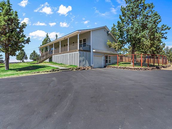 Custom home in Crooked River Ranch. Enjoy several Mtn views from wrap-around deck, the LR, and other rooms as well. Open yet private feel sitting up high and back from road w/ large freshly paved driveway and beautiful grassy front yard. Has 3 Bedrooms plus office/bonus room. Lots of windows, glimpses of mtn tops and tons of natural light. Vaulted ceilings, beautiful brick wood-burning FP, wood-supply closet and built-in shelving in LR. Large detached DBL-car garage w/ ample work spaces, separate attached shop, carport. Fenced garden area, spacious back deck. Ample storage under the home, a storage room, attached SGL-car garage w/ storage cabinets. Included in the SF--Daylight basement bedroom w/ walk-in closet and half bath that can be accessed from garage if desired. 2023 roof, forced air system and A/C. Shaded and fenced back yard. One full acre. A lot to enjoy here, come see for yourself.