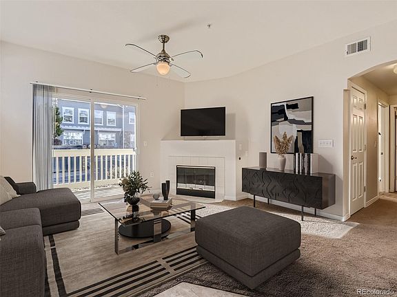 This desirable main-level ranch style condo with a 2 car tandem garage presents an incredible opportunity for comfortable living in a vibrant community with an array of amenities, easy accessibility, and a prime location in the highly sought-after Stonegate community. Meticulously maintained 2 bedroom, 2 bathroom end unit is open and bright, with newer tile in the entry, kitchen and baths. Ground level unit helps make unloading groceries and moving more manageable without struggling up stairs. Snuggle up in front of the cozy gas fireplace or venture out onto the private patio. The primary suite is spacious and inviting with a walk-in closet and 5-piece ensuite bathroom with over-sized soaking tub. Laundry days are easier with the included washer and dryer. Stay cool in the warmer weather with the new Central A/C. The detached 2 car tandem garage keeps your vehicles out of the elements, provides storage for "toys" (think side by sides, motorcycles, bicycles) and/or other items you may like to store. Community amenities include access to 3 pools, sand volleyball, tennis, pickleball and basketball courts, frisbee golf neighborhood parks and trails. The prime location offers close proximity to shopping, restaurants, DTC, highway access and convenient travel to DIA. Welcome home! Condo appraised for $370,000 on 11/28/2023. *FREE APPRAISAL,* when you use CoPro Mortgage. Call for details.