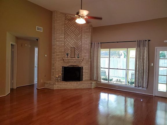 You will love this home as soon as you walk in!! Split floor plan has living room with high ceiling, hardwood floor and large windows for lots of light. Gas log fireplace is perfect for cozy winter nights. Kitchen features beautiful granite counter tops, stainless appliances, custom cabinets with lots of storage, under-counter lighting microwave, gas range, breakfast bar, and adjoining dining area. Primary bath has marble vanity, double vessel sinks and 2 walk-in closets. All bedrooms have ceiling fans. Nice covered patio. House is on a quiet cul-de-sac. Easy access to Highway 249 and Highway 99. Top rated Klein schools. NO PETS ACCEPTED.