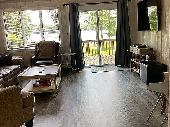 Over 100 feet of frontage. Beautiful all sports lakefront home on an acre of land. Crystal clear, deep lake with plenty to do on from fishing, to water skiing to paddle boating. Home features 3bdr, 2 car garage and large lakefront lot! Brand new flooring throughout. New large dock. Oversized two car garage, large shed and a storage house down by the water. Selling property fully furnished. Everything inside and outside included. Two kayaks, two paddle boards, Newer Crownline speedboat. (Price can be negotiated without items). Ready to enjoy instantly. 3% commission offered to buyers agent.