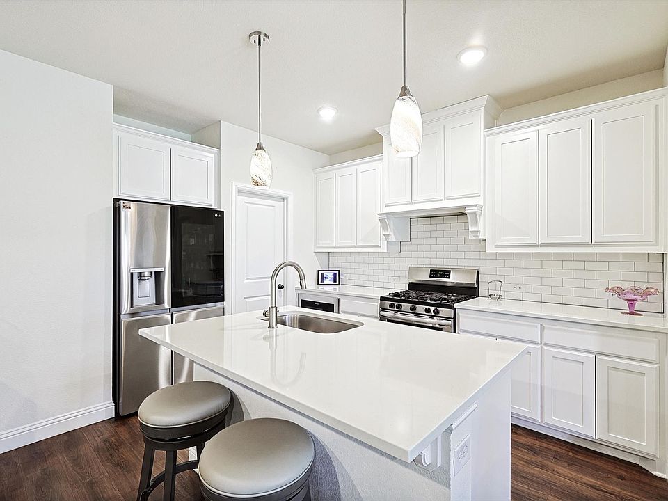 Seller is offering $8,000 towards rate buy down! Very motivated seller! Welcome to this stunning 3-bedroom, 2-bathroom home nestled in a quiet cul-de-sac, offering the perfect blend of modern elegance and country charm. With an open-concept floor plan, high ceilings, and large windows, this home is filled with natural light and stylish finishes. Interior features include spacious living area with a cozy fireplace, ideal for entertaining, Gourmet kitchen with white cabinetry, subway tile backsplash, stainless steel appliances, and a large island with bar seating, Luxurious master suite featuring a spa-like bathroom with dual vanities and 2 walk-in closets, Versatile bedrooms perfect for family, guests, or a home office, Huge laundry room with built-in storage and an oversized pantry. Exterior and outdoor living includes a generously sized backyard with a covered patio and pergola, perfect for outdoor gatherings. Fully fenced yard offering plenty of space for kids and pets to play. Backs up to a serene greenbelt with picturesque views of a winding creek. Nestled in a peaceful community with well-maintained homes. Easy access to schools, shopping, and major highways. The community has a pool, park and pond with walking trail. This home is a rare find, combining modern comforts with a spacious and scenic setting. Don't miss your chance to make it yours! Contact us today for a private showing.