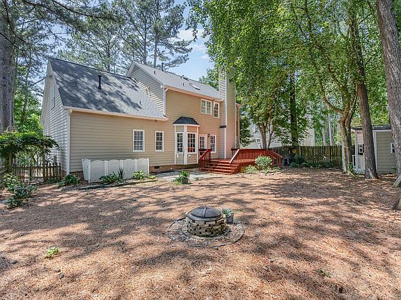 Located on a wooded culdesac lot, this Colonial-style home offers four bedrooms and 2.5 bathrooms. A welcoming front porch invites you in, while a spacious back deck provides the perfect spot to relax and enjoy the private backyard. Inside, there is an open floor plan to connect the eat-in kitchen and family room. The kitchen features stainless steel appliances, an island and pantry. The family room boasts built-in bookshelves and gas log fireplace. Upstairs you'll find the owner's suite, 2 additional bedrooms, and a bonus room that could also serve as a fourth bedroom. You'll enjoy the friendly, walkable neighborhood that is convenient to all North Raleigh has to offer.