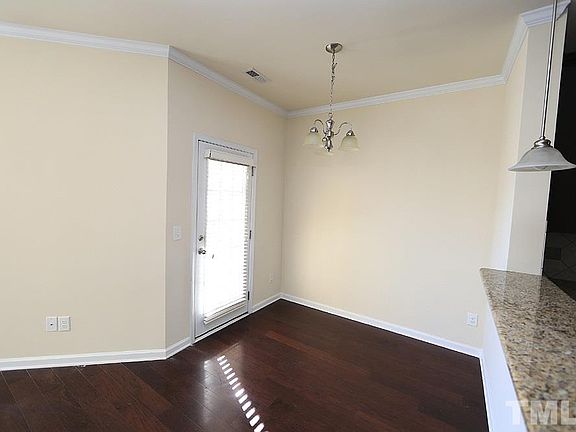 A great property with Dual Master Suites on the upper level, and a Third Suite with walk- in closet and full bath on the lower level. Stainless steel appliances, granite counter tops. Screened patio, pool, athletic club house. Investment cap has been met! Minutes to Brier Creek's restaurants ,shops, movie theater, RDU Airport and RTP. Priced to sell. Owner is behind on payments. Lender has made a recommendation for foreclosure. House is awaiting professional measurement. Utilities are turned off