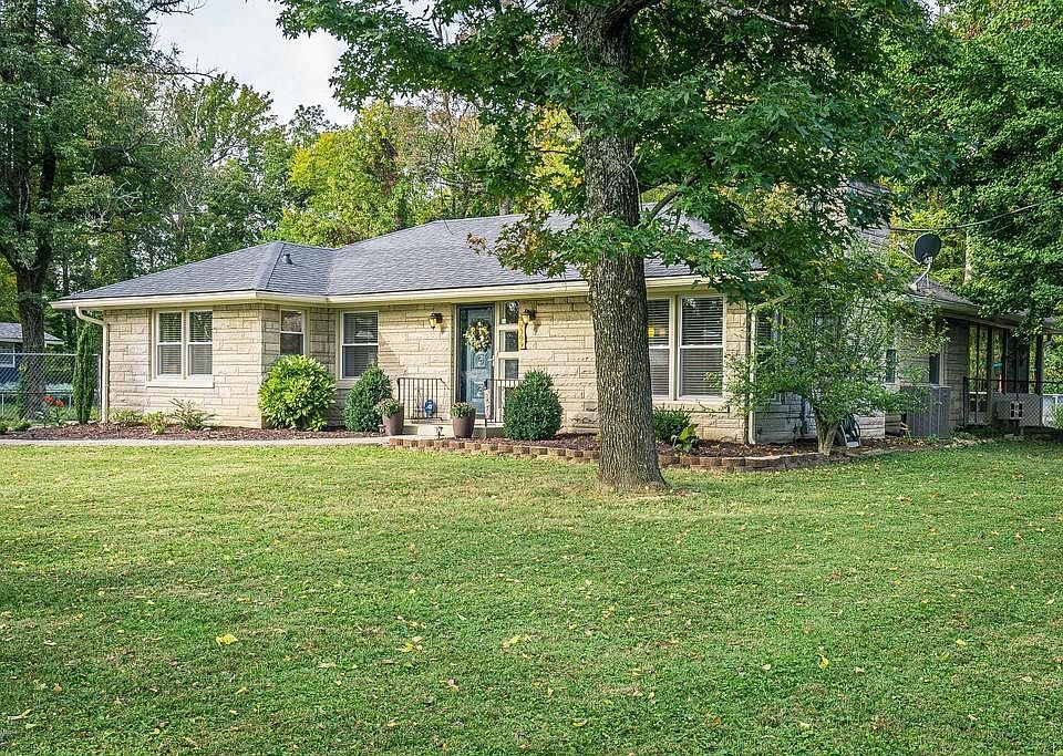 Beautiful, fully renovated Bedford stone ranch situated on a large, double lot in Fern Creek. The main level features a sizable living room with vaulted ceilings that opens to the kitchen and dining area, which is equipped with a sliding, glass door that leads to the large, all-year sunroom. Down the hall you will find a bedroom and a full bathroom that features a dual vanity, and a large master bedroom with a walk-in closet and half bath. The finished basement consists of a large, open living area that is equipped with a bar, the laundry room, a couple of good-sized closets for extra storage space, an office and the utility room. The large, fenced backyard boasts a fire pit, a 2.5 car garage featuring a second floor that can be used for extra storage space. Conveniently located within close proximity to schools, churches, restaurants, expressways, and more. Renter is responsible for utilities No smoking in house Pets will be evaluated as part of application process