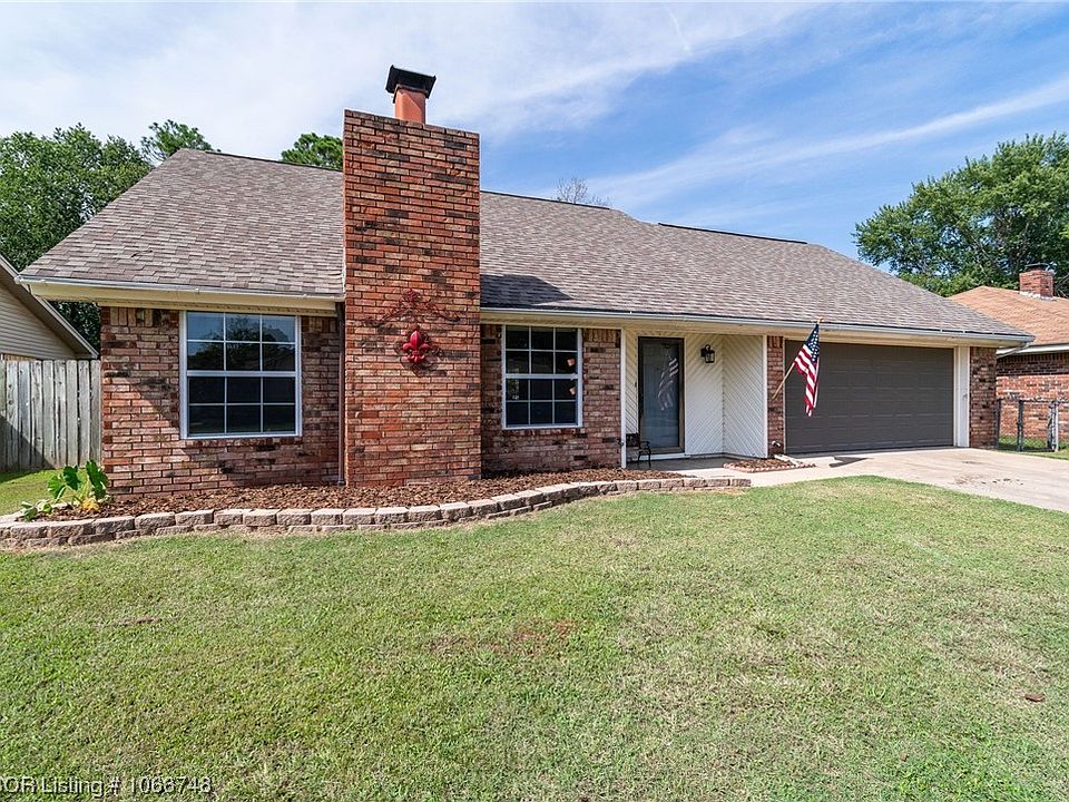 Eastside Charmer close to shopping, award winning schools, and Chaffee Crossing. This 3 bedroom split plan with a wood burning fireplace and high vaulted ceilings in the living room is cozy and comfortable. The dining room in the center of the home is sure to be that homework hub, while flanked on one side by the primary suite and a full bathroom and the other by the kitchen and large laundry. Upstairs, fresh new carpet in the hall, bedrooms and staircase. Outback a large fenced backyard with plenty of space to play, and a covered patio perfect for that late summer bbq. Hurry quick, and we can have you in here before the next holiday!