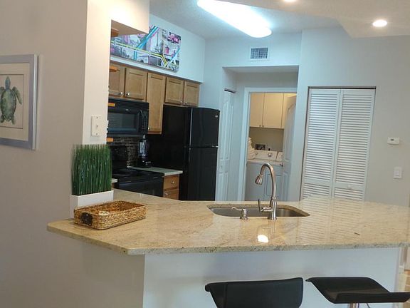 Absolutely gorgeous this third floor 1/1 furnish unit,fully upgraded with a sunroom/den.Freshly painted everything new bright and light, crown molding, 10ft ceilings,expanded kitchen, full washer and dryer and bonus sun room. Resort style living with a spectacular pool, screened outdoor dining with bbq grill, putting green, gym, and playground in a tremendous location only 4 miles to the beach in a secure gated. Turnkey,everything new and charming