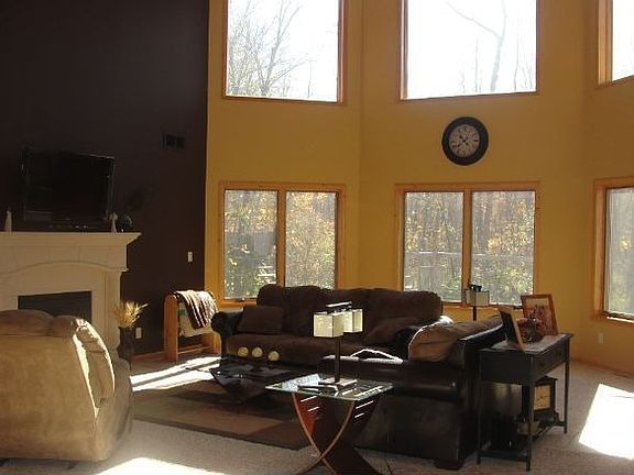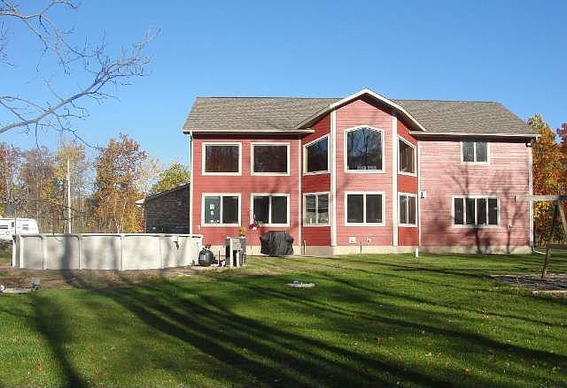 Five bed three bath, two story with floor to ceiling Anderson windows overlooking heavy woods. Additional 9.97 Acres, in floor heat, master bedroom suite, Silestone countertops, ceiling fans, tile floors, basswood T and G ceilings, large kitchen center island, SS App, 70x42 shed, some org foundation 1993.