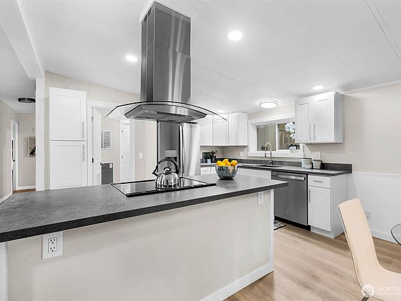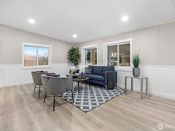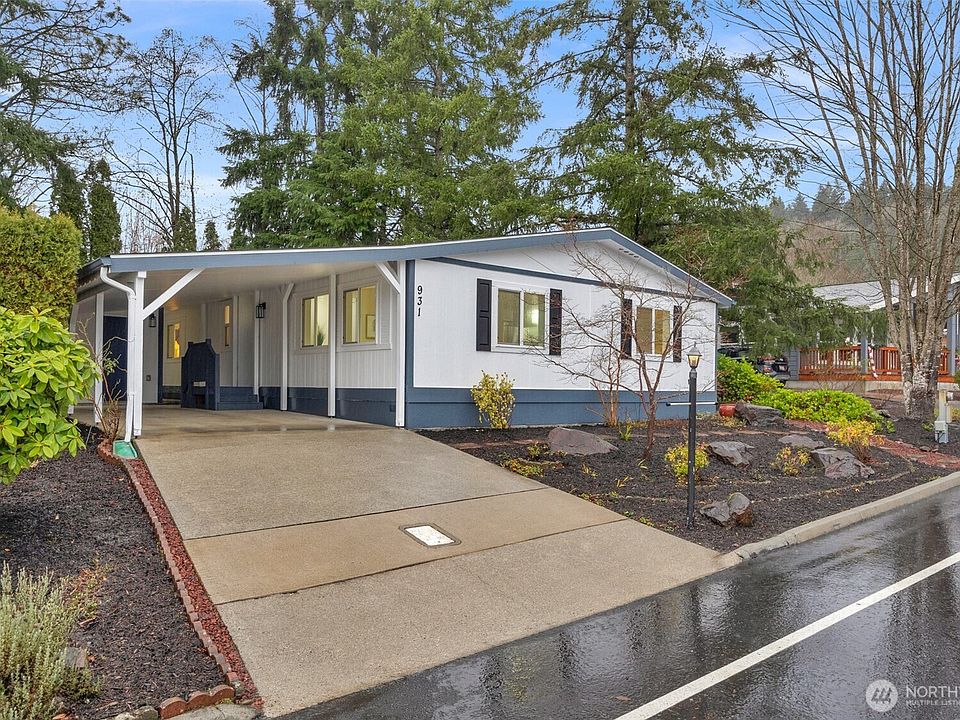 Fully Renovated 2 Bed 2 Bath + Office in this one level Rambler in Wandering Creek Estates (55+ community) where you own the land. This highly sought after floorplan offers a spacious open concept with Chefs kitchen featuring new High End stainless appliances and Stylish Quartz countertops. New waterproof flooring throughout, new paint inside and out, new doors, millwork, hardware, professional landscaping, 2 upgraded bathrooms & more. Roof and windows were recently replaced. Finished detached office/shop/craft room for your hobbies or storage. Covered Entrance, 2 car Carport. Community features include: Clubhouse, RV/boat parking, optional weekly groups activities. Minutes from shopping, coffee, restaurants, downtown Bothell and more. Full home inspection report & home warranty available.
