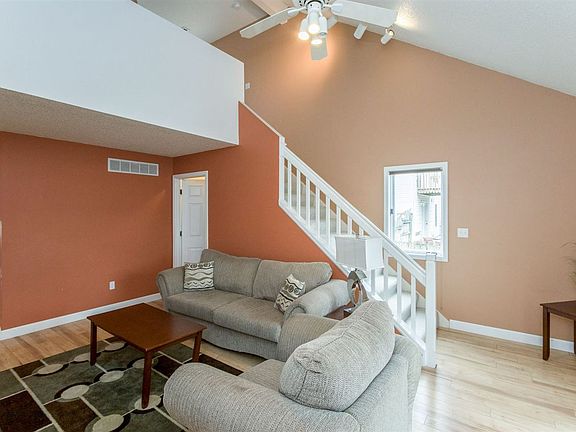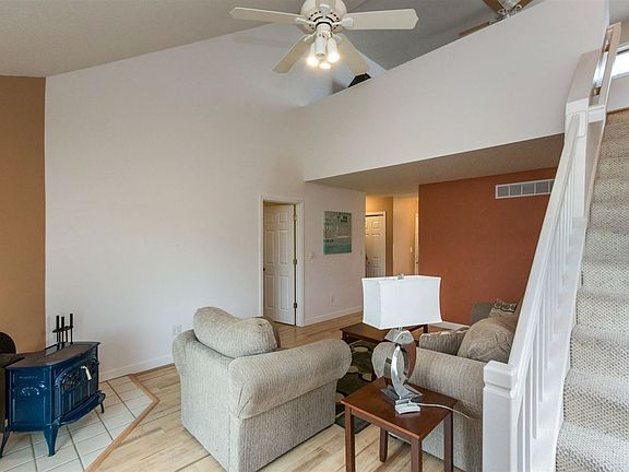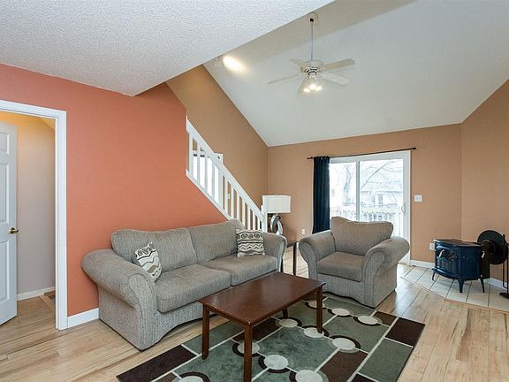Light, bright 2 story zero lot situated in the heart of Coralville. Interior with vaulted ceilings, maple laminate wood floors, playful color palette, wood burning stove and skylight. Unique floor plan with a bedroom and bath on each level. Newer stainless appliances including brand new range with smooth cooktop. Partially fenced backyard; single car garage. Close proximity to Coralville strip with shopping and restaurants minutes away; easy access to I80; quick commute to UIHC. Needs a little TLC.