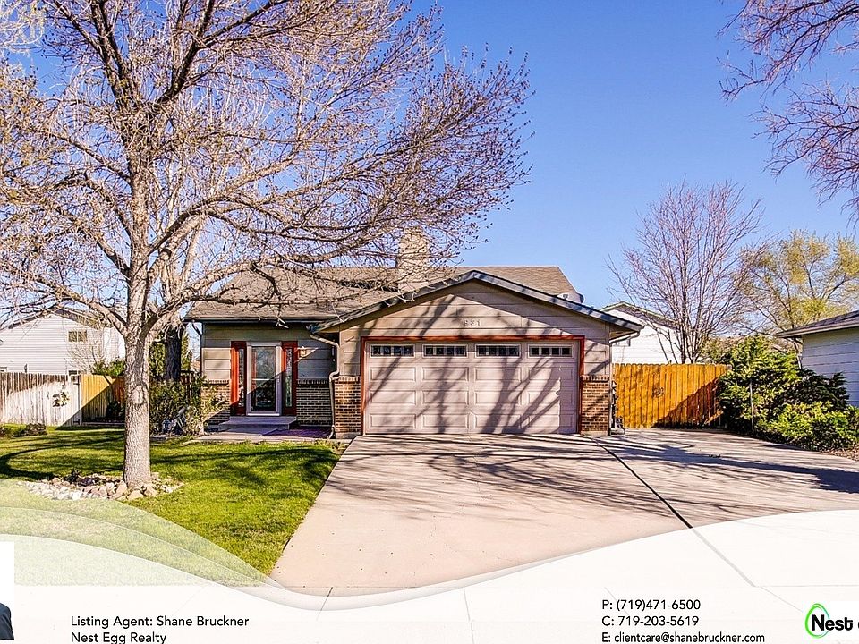 This beautiful Bi-Level home is ready for you. Immediately welcomed by impressive curb appeal including lovely landscaping. Step inside the home to find a nice open foyer with hardwood flooring that leads you upstairs or downstairs. Travel upstairs where you are immediately greeted with an open kitchen and dining area with beautiful hardwood flooring throughout. Eat-in country style kitchen features recessed lighting, stylish light fixtures throughout, counter bar, nice cabinet space and walks out to back deck. Space also features a built-in desk great for an office space. Continue to the roomy master bedroom that adjoins with upper level full bath. An additional bedroom completes the upper level. Travel down to the lower level to find a spacious family room area with wood burning fireplace and laundry space with storage cabinets. Two well appointed bedrooms and another full bath complete the lower level. Step out back to find a large wood deck that over looks a lovely landscaped backyard. Privately fenced backyard features a roomy flagstone patio area as well as large concrete patio as well. Home also offers RV parking. Home sits convenient to schools and parks. Short distance to shopping, restaurants and more. Easy access to I-25, Ft. Carson and More! This gorgeous home is a must see today!