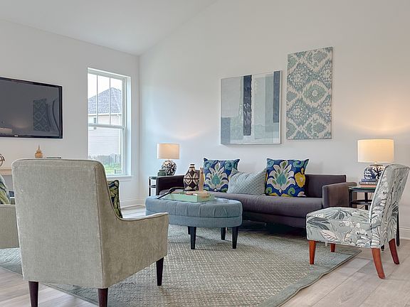 New constructionmove in ready home with no neighbors behind you! Amazing options included throughout this home including: Premium homesite, premium exterior finishes, upgraded lighting and plumbing finishes, gourmet kitchen cabinet option, quartz countertops in kitchen and baths, upgraded flooring and appliances! The Ashbury model offers an impressive list of amenities in a manageable package. Cathedral ceilings and a beautiful fireplace accentuate an impressive great room which opens into a dining area and kitchen, all lined by hardwood floors. And with granite countertops, 42" dovetail cabinetry, soft close drawers and crown molding, the kitchen provides the practicality and luxury that every chef covets. The kitchen leads into a laundry room that connects to a spacious three-car garage. Opposite the laundry room, you'll find three bedrooms and two bathrooms, highlighted by an opulent master bedroom featuring tray ceilings, and a serene master bath with double sinks, soaker tub and separate shower. Homes built with smart home technology from Honeywell, Schlage, and Lutron.