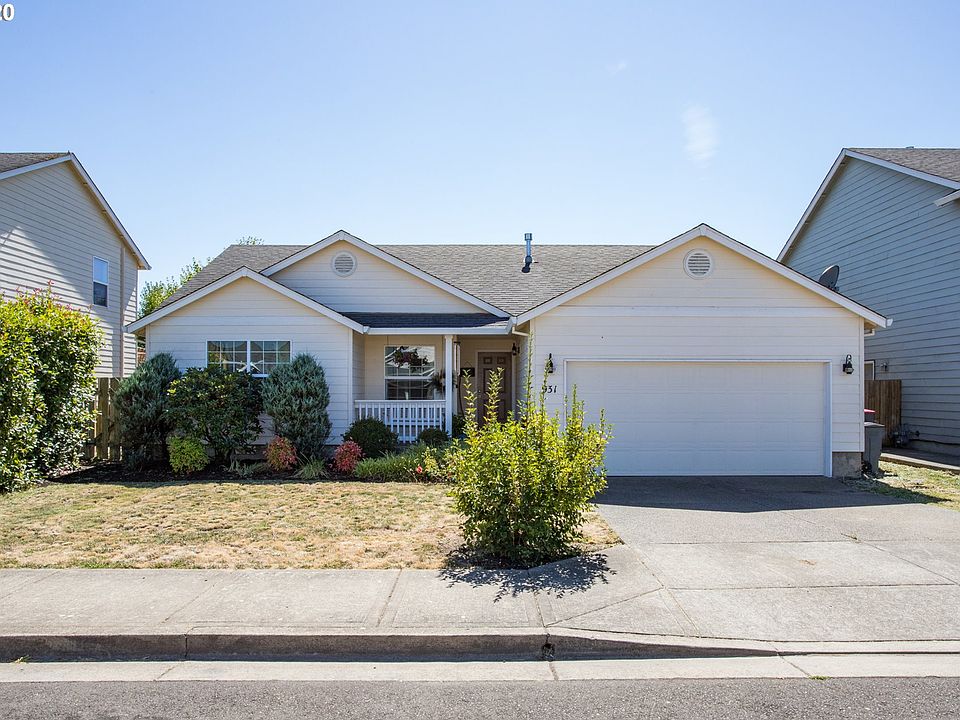 Single level home with updates in a desirable area. Charming front porch welcomes you inside. Granite counter tops with custom tile, gas range & stainless sink. Wood plank laminate flooring through main living areas. Large, open vaulted great room with gas fireplace. Primary bedroom has large walk-in closet and spacious bathroom. Fully fenced backyard backs to green space.