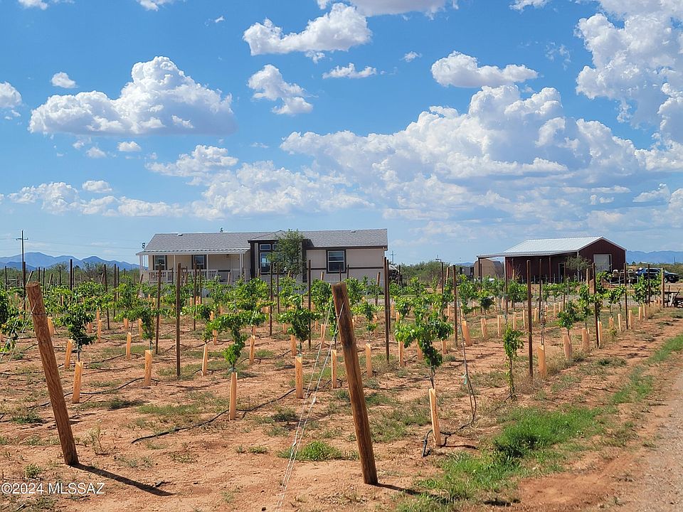 Country Living on 26 plus acres. New Well drilled 600 ft to support all your growing needs.. Already started Vineyard with 320 vines containing 4 varieties of grapes, Pecan Orchard, Fruit Orchard and numerous trees planted around the property. Everything on drippers. Greenhouse with garden areas planted. New 2023 Cavco 2x6 construction. 3 bedrm 2 bath with Decks on front and back. 28x36 Shop with 2 10ft Roll up doors. Paved access from Hwy 191 and Birch Rd and only 15 minutes to I-10 and Tucson is only 1 hour. Don't miss out on your Dream Rural property already for your enjoyment.
