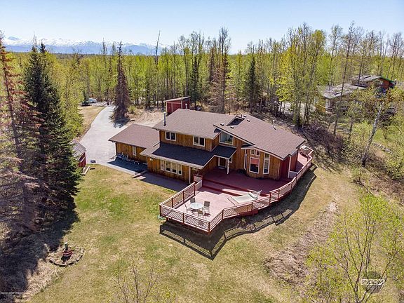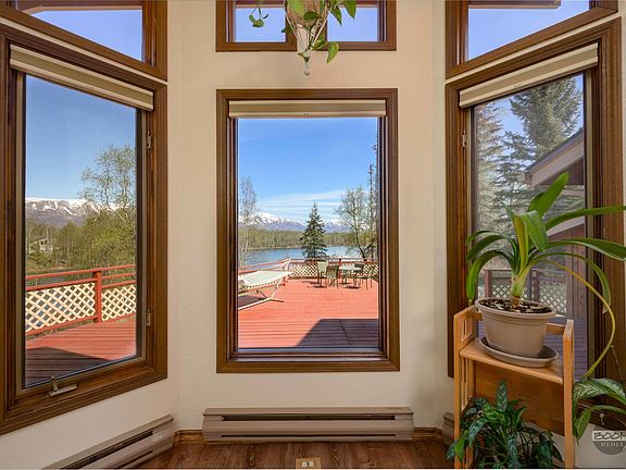 Entertain on your deck overlooking the lake or soak in the solitude of mountain reflections. This home has 140 feet of lake front! Private Mstr Bdr/Ba with 2 bdr 1 bath upstairs. The main floor updated w beautiful LVP and stone. Two enormous family rooms for when your family isn't playing outside. RV Parking and shed for all of your toys. Come see and live your Alaska Dream today!