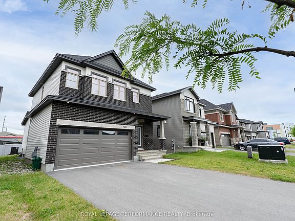 Discover elegance in this 2 year old, beautifully upgraded Aubrey Model home with a double garage is situated in Westwood , Stittsville. This upgraded 2 storey offers over 2100 sq. ft. of living space, perfect for a growing family. Boasting 4 spacious bedrooms, 3 bathrooms and a finished basement in this upscale neighborhood. Step inside through the front door to you large entrance way where you'll be greeted by an open floor plan with 9' ceilings and modern touches. The spacious layout with a gourmet kitchen, including all the appliances, has a spacious island and abundant storage. Great for both family living and entertaining. Adjacent to the kitchen, the bright living room is cozy spot to unwind with a gas fireplace and the elegant dining area is perfect for hosting dinners. The main floor laundry and mudroom, two-piece powder room, beautiful engineered hardwood flooring, and recessed pot lights complete this level. Upstairs, you'll find a spacious primary bedroom with a walk-in closet and 4-piece ensuite, along with 3 additional bedrooms with a main 4-piece bathroom. The fully finished basement includes comfortable carpets and plenty of storage space. In this family oriented neighborhood, you'll find parks, Trans-Canada Trail, the Cardel Recreation Complex, Top Schools and more, all close by. Schedule your private showing today and experience the perfect blend of comfort, style, and convenience!