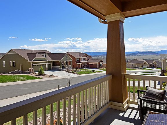 Enjoy nature & views from Tara's Ridge in Crystal Valley Ranch! Welcome home to this beautiful Lennar Silverleaf model located on a quiet street backing open space. This 4 bed 4 bath home w/vaulted ceilings, walls of windows, hdwd floors, plantation shutters, granite counters, stainless appliances & more. Main floor includes a formal dining rm, family rm w/vault ceilings, chef's kitchen w/butlers pantry, sunny kitchen nook, lg island w/pendant lighting, huge walk in pantry, granite counters, custom backsplash & maple cabinets in a custom Chiffon White. There is a separate office w/dbl French doors & views to the backyard. 1/2 ba & mud room area. Upstairs the master is perfect oasis at the end of the day w/views to the open space, huge walk in closet,his & hers sinks, lg soaking tub & separate shower all w/custom tile. 2 bdrms w/jack-n-jill bath & 4th bdrm w/en suite bath. The covered deck is perfect for use year-round! Lg side yard perfect for outdoor play & views to Pikes Peak!