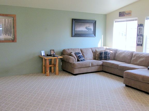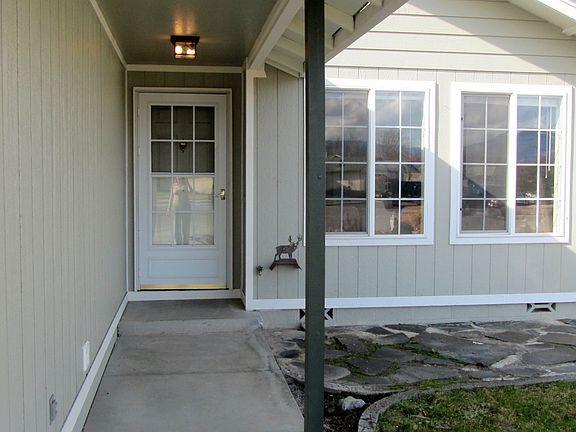 Great floor plan on large lot in cul-de-sac location! Covered front porch entry. Vaulted ceilings, two skylights in living room. Laminate flooring in kitchen and dining. Slider to covered back patio off dining room. Spacious master bedroom with walk-in closet. New tile floors in both bathrooms. New hot water heater installed summer 2013. Big RV parking. Open fields behind fenced backyard.