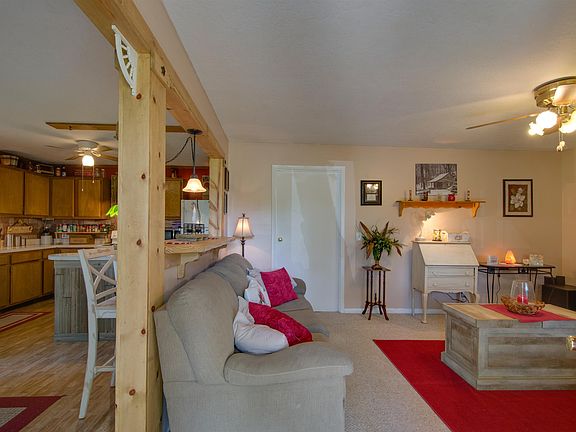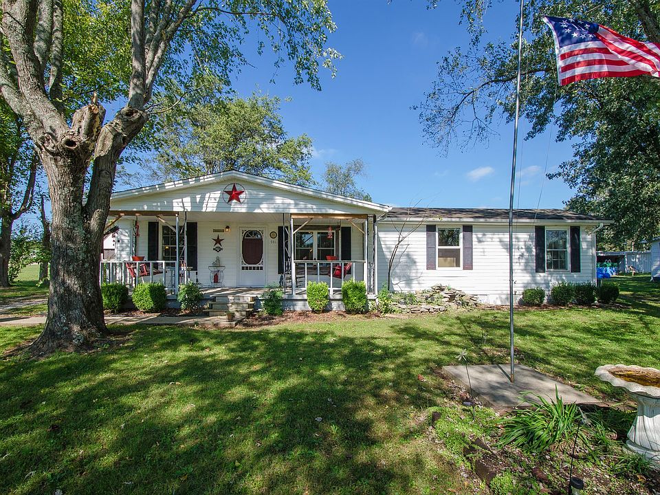 Brand new roof!!! This rustic home in the country has beautiful mature trees all over the property, a storage building in the back, a front porch with a water feature and a horseshoe driveway.