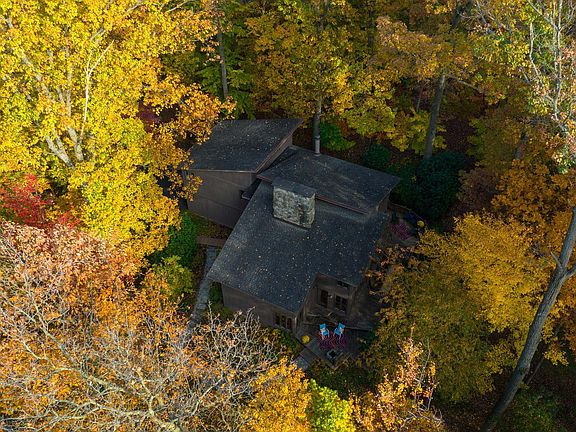 Surrounded by beautiful trees, this modern, architecture-designed custom home is secluded and yet you're only five- to ten-minutes from everything! With two decks outside plus a fire pit on one of the decks, it's perfect for entertaining family and friends. The two-story living room boasts a magnificent floor to ceiling stone wood burning fireplace that will keep you warm during the colder months of the year. The family room with a wet bar also features a corner stone fireplace. New carpeting was recently installed in the family room as well. Upstairs, there's a cool loft with built-ins that overlooks the living room and makes for a great spot to read or enjoy your hobbies. The second level also hosts four bedrooms and a media room in between three of the bedrooms with built-in seating for watching TV or just relaxing. The kitchen has lots of cabinet space, a built-in desk, and a separate dining area. The two-story formal dining room that opens to one of the decks takes in the peaceful wooded views in the quiet backyard. You also will appreciate a finished basement room for extra living or storage space. Schedule a showing today. This home and its tranquil setting are waiting just for you!