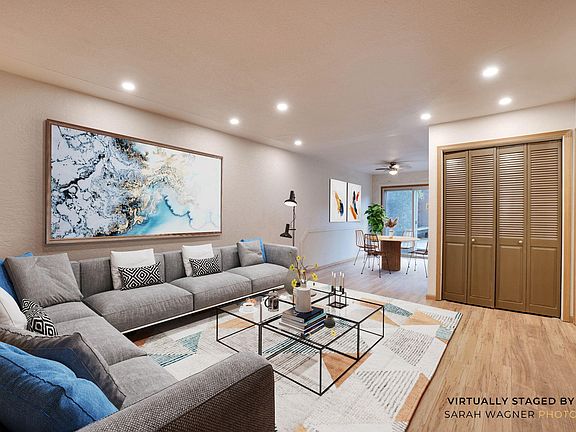 Clean and convenient condo! 2 large bedrooms with vaulted ceilings upstairs. Laundry located downstairs right next to the half bath! Kitchen has breakfast bar and looks out to the south facing deck. Easy access to the Detached garage. HOA Dues are $284.97.