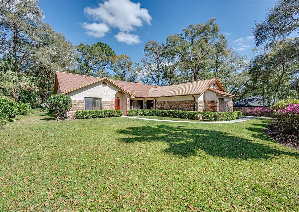 Enjoy a rare opportunity to purchase this beautiful home in the gated, Wekiwa Glen community. As you approach the property, notice the classic metal roof and mature landscaping. Upon entering, the fourth bedroom is to the left and is currently set up for a home office. Behind it at the back of the home is the oversized master bedroom with volume ceiling, walk-in closet, and sliding doors providing views and direct access to the pool. The master bath includes dual sink, vanity space, and separate tub and shower. For entertaining guests, the living room and dining room give an open feel with vaulted ceiling and views to the pool and landscaping beyond. To the right is the spacious family room and eat in kitchen with its own views of the pool out back. The triple sliders in the living and family rooms provide an excellent Florida opportunity for indoor and outdoor entertaining. The built-in grill is an added bonus! On those cooler winter nights, curl up by the fireplace in the family room. The Kitchen has plenty storage space, coordinated black appliances, Smart Samsung 4-door Refrigerator, new dishwasher, and room to cook for those special gatherings. The laundry room off the kitchen has a bonus pantry storage closet for extra can and paper goods. The hallway off the family room leads to two more nicely sized bedrooms and full bathroom, again with dual sinks. Out back, relax in the screen enclosed pool with variable speed pool pump (2022) or sip tea on the large, covered deck. Outside of the screen enclosure is space for a garden and pet area, plus a treed area for additional privacy. This gated community has a playground and tennis courts as well as easy access to major roads, shopping, Wekiva Springs Park, and Kelly Park. Home's newer and special features include copper metalized roof (2021) with modern skylights strategically placed to add natural light in the main living areas, gutters with leafguard, whole house central vacuum, 5-ton Rheem A/C (2021), hybrid water heater, water osmosis ionic exchange system, alarm system, garage storage closets, custom storage sheds, and more.