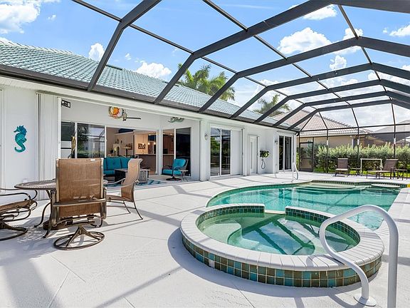 Experience luxury living in this completely remodeled 3-bedroom, 2.5-bathroom home nestled in the captivating community of Burnt Store Marina. NOT located in a flood zone, enjoy stunning views of the golf course from your private pool with built-in spa with Southern Exposure. The interior boasts new luxury vinyl and porcelain tile flooring, complemented by new window treatments throughout. Entertain effortlessly in the open concept floor plan featuring cathedral ceilings and split bedrooms. Sliders open seamlessly to the expansive lanai, integrating indoor and outdoor living spaces. The gourmet kitchen is equipped with solid wood cabinets, granite countertops, new stainless steel appliances including an induction cooktop and convection oven & microwave. Retreat to the spacious primary bedroom featuring a tray ceiling and walk-in closets upgraded by Closets By Design. The primary bathroom offers a large walk-in shower, lighted mirrors, granite countertops, and a stained glass window. Recent upgrades include a 2020 AC system with two electronic air cleaners, a 2022 water heater, and a whole house water purification system with reverse osmosis unit installed in 2021. Additional peace of mind is provided by a Whole House Generac 22KW Generator, hurricane impact windows, and accordion shutters. Burnt Store Marina amenities include the largest deep-water marina in SWFL, a 27 Hole Executive Golf Course, three restaurants, and a fitness/pool/pickleball club. Don't miss the opportunity to own this exquisite home in a vibrant and sought-after community. **Furniture is negotiable and the adjacent vacant lot is also available for sale so it can be purchased as package deal.