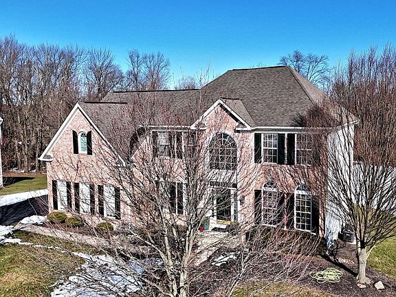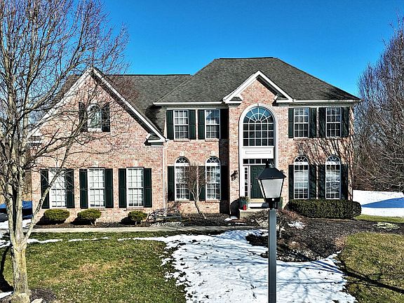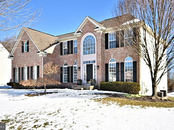 Welcome to this GORGEOUS 4 bedroom, 2 ½ bath brick colonial nestled on a quiet cul-de-sac location in prestigious Hickory Ridge. This home has been meticulously maintained by the original owners who lovingly upgraded it over the years. Enter the two-story Foyer, and notice all the natural light coming in from the palladium window, the custom molding, the turned oak staircase & hardwood flooring that continues to the Powder room, Kitchen, and Morning room. To the left of the Foyer is a generous-sized Office, and to the right is the Living room and Dining room, with custom crown molding, and chair rail in the Dining room. The Office and Living room have 1/2 moon windows over the long double-hung front windows. 3M tinting was applied to all windows to prevent fading of interior belongings. Custom blinds and plantation shutters have been added plus recessed lighting throughout. The kitchen boasts 36” and 42” oak cabinetry, granite countertops, tumble marble backsplash with decorative glass design, over & under kitchen cabinet lighting, granite topped island cabinetry with elegant pendant lighting, a large Pantry closet, Jenn Air black glass kitchen appliances, double deep sink with garbage disposal, upgraded faucet and expansive Breakfast Bar. The beautiful Morning room has a French door and full wall windows that open the kitchen to an expansive view of the rear yard which is adjacent to 8.47 acres of Warrington township land. It’s like your own personal sanctuary where you can see numerous species of birds as well as local wild turkeys, deer, and foxes. From the Kitchen, walk into the conveniently located mud room/laundry room or enter the large family room with a Vaulted ceiling, gas-burning fireplace with a wood mantle, and transom windows over the long double-hung windows, enhancing natural lighting. The rear staircase with oak banisters & rails privately lead to a second-floor hallway landing that overlooks the Family room and the bedrooms. Enter the Master Bedroom and notice the Tray Ceiling, custom lighting, Sitting room, Walk-in designer closet, and additional closet. The En-suite bath has a soaking tub, a separate shower, a double sink vanity with a make-up area, and a separate water closet! Down the hall, you'll find 3 generous bedrooms with professionally organized closets and the hall bathroom with a double sink vanity. This elegant hallway overlooks the entry foyer. The basement has been finished into an exercise room, an office, and a huge room, large enough to be a gym or rec room or large enough to hold a pool table and a pingpong table. Then step down into the sunken theatre area. There are additional closets/storage rooms. Warrington township required sprinklers throughout this property. Outside you will find the street has cobblestone curbing; another elegant feature to enhance curb appeal. This development is located in the award-winning Central Bucks School District. Enjoy the best of the best, including its location near major highways and shopping locations. What's not to like? Only if someone ELSE gets the house; so make sure you see this beauty before it's gone.