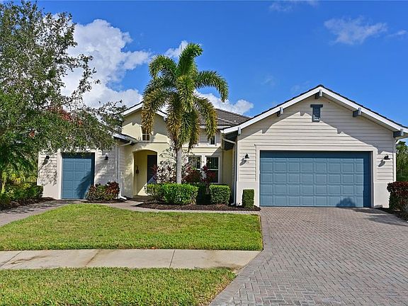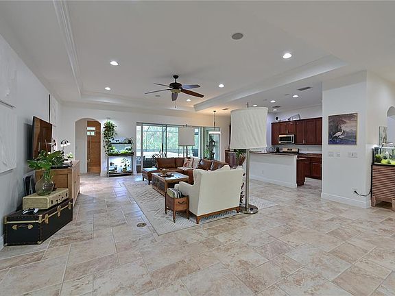 Welcome to Your Elegant, Maintenance-Free Home in Tidewater Preserve! Experience luxury living in this stunning, move-in ready home located within the 24/7 manned gates of Tidewater Preserve, a popular boating community. If you're searching for a resort-style lifestyle, look no further! As you approach, brick pavers lead you to the front door, welcoming you into a home with soaring ceilings and an open-concept floorplan. The great room features tray ceilings and multiple sliding doors that seamlessly blend indoor and outdoor living. The dining area also has a tray ceiling and is open to great room. Beautiful travertine tile flooring extends throughout most of the home, adding to its elegance. Built in 2012, this home boasts incredible upgrades, including: 3 Bedrooms + Den (4th Bedroom), 3 Bathrooms, 3rd Smaller Garage, Storm Impact Windows, Ceiling Fans & Special Lighting Fixtures, Custom His and Hers Closets, Fabulous Granite Countertops, New AC (2021) 42” Solid Wood Cabinetry with Glass Fronts, Newer Water Heater, and Upgraded Gas Appliances. The spacious primary bedroom features a tray ceiling, a door to the pool area, and large his and her walk-in closets. The primary bathroom offers a sunken tub, a fabulous shower, and dual sinks with quartz counters. Outdoor Living at Its Finest: Step outside to your own private oasis! The wonderful resistance pool is perfect for fitness enthusiasts, while the Kevlar storm screen and brick pavers add functionality and protection. Situated on a cul-de-sac lot, this home offers space, privacy, and a picturesque backdrop of lovely palm and oak trees, making you feel as if you are in a park. The oversized yard can be completely fenced for pets and provides convenience for pet owners. Additionally, the exterior features an outdoor movie theater, perfect for entertaining family and guests. Resort-Quality Amenities: Tidewater Preserve is a guard-gated community offering resort-quality amenities, including: Private Marina with electronic Lift & Access to Manatee River/Gulf via lock system. 2 Clubhouses, 2 Fully Equipped Fitness Centers, Beach Entry Pool, Har-Tru Tennis Courts, Dog Park & Playground, Kayak & Canoe Launch, and Nature Trails Along the River Enjoy the vibrant lifestyle of Tidewater Preserve, conveniently located near Lakewood Ranch, Sarasota, and world-class beaches. Boat slips are available for rent, and management can assist after closing. With low HOA fees and no CDD, this home is the perfect gateway to the Florida lifestyle you've been dreaming of.