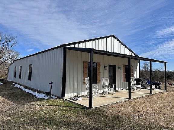 Discover a newly built 2024 custom Barndo/Cabin perfectly set on 50 acres of mixed open pastures and usable woods with trails, ideal for outdoor enthusiasts. The property also features a fully stocked pond teeming with bass, crappie, and perch, offering serene fishing opportunities. Home Features • Square Footage: 1,500 sq ft, including a 10x30 insulated garage with a roll-up door. • Bedrooms: 3 spacious bedrooms, each with large closets. • Bathrooms: 2 full baths, including a master suite with a dual-sink vanity and a walk-in shower (tiling to be completed before closing). The second bathroom features an additional walk-in closet for extra storage. • Interior Details: Beautiful tongue-and-groove pine walls throughout, with sheetrock finishes in the bathrooms and closets. • Energy Efficiency: 8-inch walls with closed-cell spray foam insulation, tankless water heater, and a premium HVAC system ensure exceptional energy efficiency. • Flooring: PERGO hardwood floors throughout. • Water System: A whole-home water filtration system with well water. Kitchen & Appliances • Includes new, top-of-the-line LG stove and refrigerator, plus a stackable GE washer/dryer. • Kitchen features granite countertops. • All appliances convey with the property. • Enjoy high-speed internet with Starlink for seamless work or streaming. Exterior Amenities • Front Porch: Relax on the 8x30 covered front porch. Outdoor Structures: •15x30 three-sided covered lean-to (built in 2024). • New 30x40 barn with three 10x10 stalls, water, and electric (completed October 2024). • Custom 20x10 loafing shed with water and electric. • An older barn for additional storage or livestock use. Land Improvements: Newly fenced and cross-fenced for easy livestock management. Additional Features • In-ground storm shelter for peace of mind. • Useable woods and trails for hiking, riding, or exploring. • All materials for completing trim, painting, and tiling the master bath are included and can be finished before closing. Don’t miss this exceptional property that combines energy-efficient living with modern amenities and outdoor charm. It’s the perfect retreat for those seeking tranquility and self-sustainability.