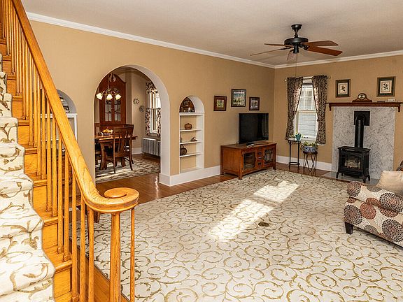 forced-air furnace allowing for separate comfort control. Both systems have recently been professionally cleaned and serviced with required code upgrades made to the boiler system. All plumbing and electrical systems have been upgraded. The backyard features a patio and HUGE driveway/off street parking area for numerous vehicles and toys. An 8X10 stick-built shed offers extra storage. There is also a double detached garage with alley access with room to add additional garage space if needed. This home has been beautifully maintained by the same family for over 30 years. All work has been done with a critical eye towards preserving its original charm, inside and out. There are original paneled doors with crystal doorknobs, wide baseboards and leaded glass door from foyer. Recent major exterior work includes having class 4 roof shingles professionally installed and patching/repairing the original stucco.