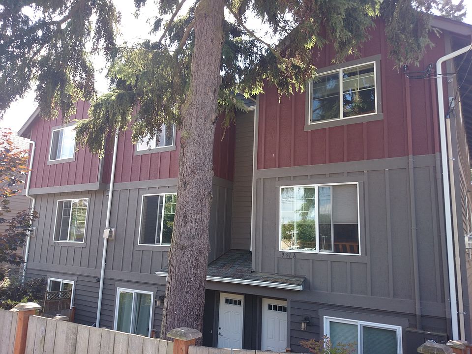 Stunning townhome in vibrant Greenwood on a residential street! Corner unit w/ bamboo floors, gas fireplace, radiant heat, tankless water heater, top-down blinds & sec sys. Open kitchen boasts granite counters, stainless appliances, pantry, breakfast bar, gas range & access to BBQ deck. Upper level offers 2 huge bdrms w/ vaulted ceilings and a full bath w/double sinks & glass tile accents. Entry level has 1 bdrm & full bath -great layout for guests. Close to restaurants, shops & bus to downtown.