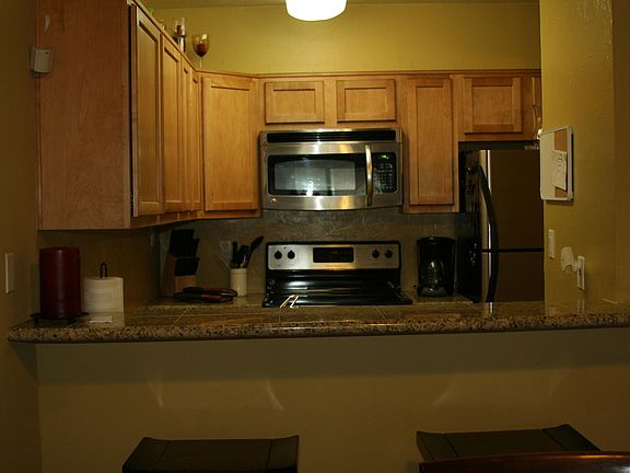 Fabulous end unit condo overlooking the pool. Fully furnished with high quality furniture. See the Photos! Spacious 10'x15'3'' bedrooms. EACH BEDROOM HAS IT'S OWN PRIVATE BATHROOM with decorative racks/cabinets for extra storage and ceramic tile. No need to use the common laundry facilities... already upgraded with a stacked washer/dryer inside the condo. Awesome kitchen with granite counter tops, stainless steel appliances (refrigerator, black top stove, microwave & dishwasher) and ceramic tile flooring. Don't forget that this condo comes with a huge TV, alarm system, DVD player, router, majority of kitchen items plus so much more. See the inventory list for details. To top it off you're located within walking distance to classes, Main Gate Square with all night life, restaurants, coffee houses, shoppes and trolley.