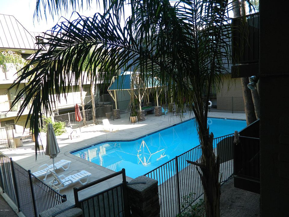 WALK TO CLASSES--NO NEED TO WAIT FOR TROLLEY! Awesome condo near the main gate to the UofA. Prime location within the community overlooking the courtyard. Around the corner to the student lounge, laundry facilities, and assigned parking. Spacious 1,086 sq.ft with 2 huge bedrooms. The main bathroom is ideally set-up for roommates with dual sinks, dual medicine cabinets, tub/shower, & 2 stacks of 4 drawers. Kitchen boasts granite countertops and SS appliances--refrigerator, stove, microwave, disposal, and dishwasher included. NEW A/C/HEATING SYSTEM 2 YEARS AGO! Steps away from Main Gate Square on University Blvd. with all the restaurants, coffee houses, salons, shoppes, night life activities, and the trolley! Don't miss out--these condos sell fast during this time of year!