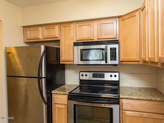 Walk to classes!!! Awesome condo one block from the main gate to the U of A. Spacious bedrooms are approximately 10'x15'3''. Wood laminate flooring throughout for easy cleaning. Kitchen boasts stainless steel appliances (refrigerator-black smooth top stove-microwave-dishwasher) and granite countertops. Main bathroom with bathtub/shower is set up for roommates. Has large cabinet with two cupboards, two stacks of four drawers, dual sinks, two medicine cabinets and granite counter top. AC system only 5 years old, installed May 2014. Gated community with a great laundry room, student lounge and huge pool area with a pool table. Campus Walk is steps to Main Gate Square featuring numerous restaurants, shops, trolley to 4th Avenue and downtown. The Tucson University Park Hotel is located across the street for all your out of town guests.