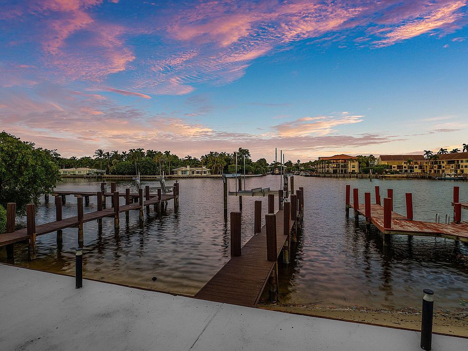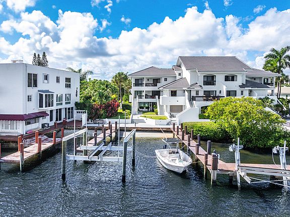 Waterfront Perfection with Authorized Deeded Dock -- Marina Del Rey, East Delray BeachExperience the ultimate in waterfront living from this exquisitely renovated, ground-floor residence in the highly coveted Marina Del Rey along the world-famous Palm Trail. Boasting its own private deeded dock with a brand-new 24,000 lb. hoist, water, and electric, this is your opportunity to live the true Intracoastal lifestyle--with ocean access right from your backyard.Set in an intimate boutique 10-unit building only a 10 minute walk to the beach, this meticulously maintained, turnkey end unit combines contemporary elegance with timeless coastal charm. Step inside to a bright, open-concept floor plan where panoramic water views take center stage from the moment you enter. The custom-designed kitchen is a showpiece, featuring quartzite counters and backsplash, a striking semi-precious Crystallina stone island table, and top-tier appliances perfect for both gourmet cooking and effortless entertaining. The adjacent living area features a custom built-in bar crafted with matching stone, complete with a wine refrigerator, beverage fridge, and ice maker - an entertainer's dream.