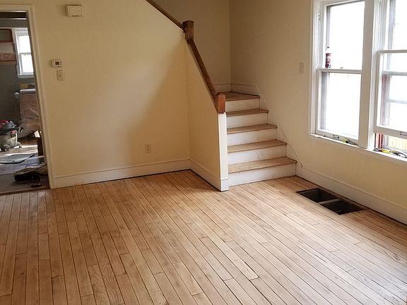 Totally renovated. Newly finished floors. New appliances. Pets are considered with aditional amount. Washer/dryer hookup in full basement no attic. No yard to speak of. Landlord pays garbage recycling and landscaping.