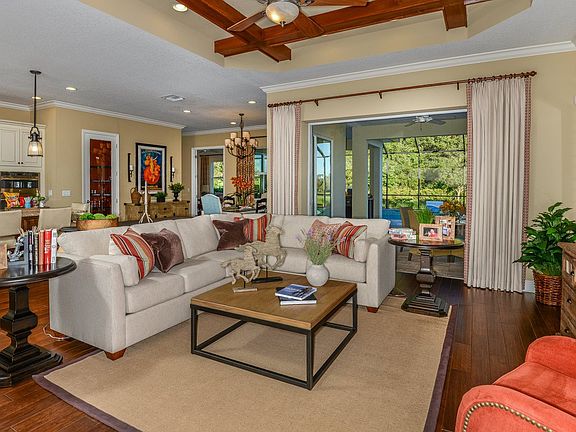 This well designed 3 bedroom home lends itself to taking advantage of all that the warm Florida weather offers. An open floor plan with kitchen island and club room beckons for entertaining inside and out.The beautiful master suite includes his and hers closets and the large master bath provides private comfort. There is a guest bedroom with en-suite bath plus a 3rd bedroom and bath, all allow space for guests or other interests and the den gives room to get work done or read in a quiet space.
