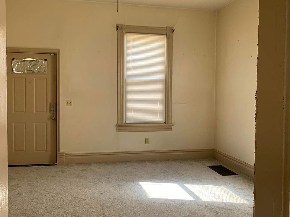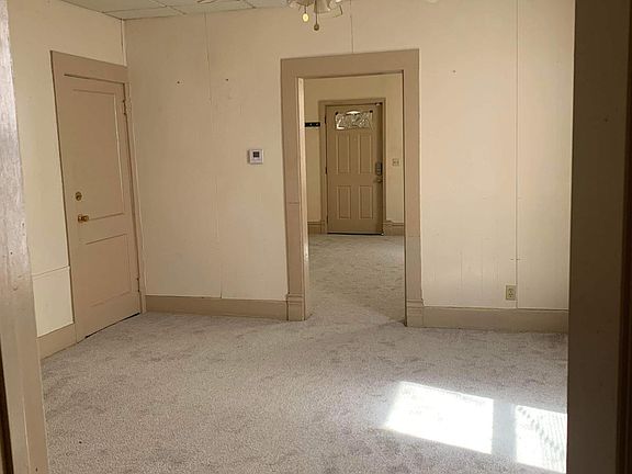 PLEASE NOTE, we do not list on Facebook. If you see this house on Marketplace it is not the owners of this residence and do not engage. We are doing applications on Zillow only. 3 bedroom 1 bath unit is part of a duplex. One shared wall with other unit. All three bedrooms upstairs, access to basement with laundry hook ups. New carpet and flooring, side porch off kitchen. Short drive to downtown, close to main highway, walking distance to food and convenience store. Tenant is responsible for most utilities including electric, gas, water, lawn care and snow removal. Landlord pays trash and sewer.