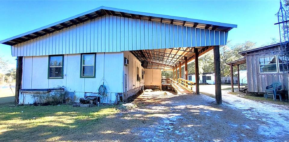 Own a piece of Old Florida! This 2 Bedroom 1 Bath Mobile Home features front and back porches, office, dining room, ceiling fans throughout and individual heating and cooling wall units in each room. The mobile home has been recently covered with a 60 x 40 Barn with Metal Roof, has installed security cameras, outside motion sensor lights, solar hook up for pool installation, and a new water filtration system. This large 10 acre parcel has many covered carports and outbuildings to include a Park Model Camper and another vacant mobile home that can all be restored or continue to use as outbuildings. The Property is Fenced and Crossed Fenced, with sprinkler hookup in the garden, and a very large pond. Enjoy the serene views from the front porch as you watch the wildlife roam and drink from the pond taking in the peace this private lot brings you.