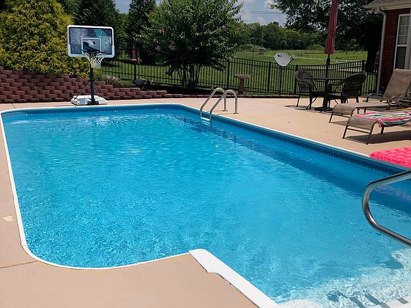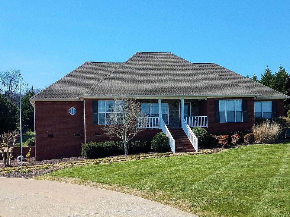 Gorgeous 1 1/2 story Ranch all brick with rocking chair front porch. 1+ acre corner lot. Manicured lawn. Fenced rear yard surrounded by mature trees for total privacy. Enjoy your inground salt water pool and large covered patio. Double trey ceiling in sunroom and master bedroom. Hard wood floors refinished April 2012, New 30 year shingles June 2012. New Convection oven 2017. Granite kitchen countertops Sept 2018. New Water Heater 03/19. Ceramic tile in bathrooms. Rooms: Large master suite with attached office/nursery/exercise room and private covered porch. 2 guest bedrooms, sunroom, large open living room with gas fireplace, formal dining room, separate breakfast area and additional bar stool counter area in large open kitchen, laundry room with utility sink, and additional extra large separate pantry. Huge bonus room above two car garage.