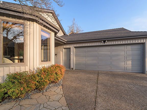 Simply stunning single level NW contemporary in a prime Ferry Street Bridge location! A perfect blend of gracious style and useful functionality, thoughtfully remodeled with hardwood floors, vaulted ceilings, and an abundance of natural light from skylights and solar tubes throughout, creating a bright and airy atmosphere. Impeccably updated gourmet kitchen, complete with sleek black stainless steel Kitchen Aid appliances, elegant quartz countertops, and an inviting eating area. The formal dining room provides the perfect setting for entertaining guests, while the spacious living room offers a cozy gas fireplace and an open flow, making it an ideal space for relaxation and gatherings, with double glass doors to the outdoor covered patio. The generous primary suite includes an en-suite bath, walk-in closet, and convenient access to the private backyard. Two other bedrooms, one thoughtfully equipped with a built-in desk, offer versatility. Abundant storage throughout with built-in shelving, copious closets, and an attached 2 car garage with even more storage and built-in work spaces. Beautifully landscaped for year round enjoyment with a private covered patio, water feature, and fully fenced backyard. Super convenient and serene location on a cobblestone street off of Spyglass, close to Oakway Mall, Eugene Country Club, restaurants, shopping and golf courses.