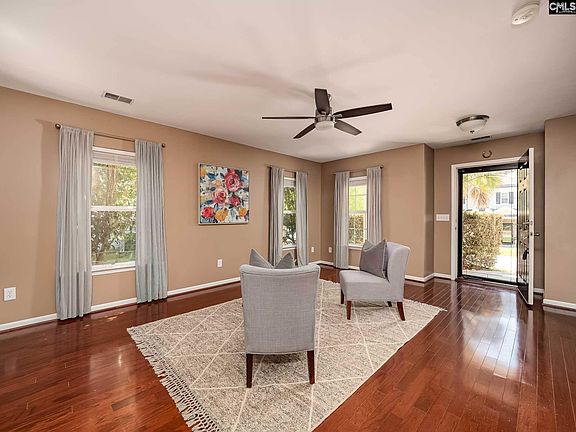 Beautiful 2 story home in the gated community of Spears Creek Village. Private front porch, mature landscaping, and stone accents give this home welcoming curb appeal! 3 bedrooms, 2 1/2 baths in over 1600sf. Open floorplan on the main floor and lots of natural light! Great Room with hardwoods flows into the Eat-in Kitchen with a view and easy access to the covered patio and fully fenced backyard. Kitchen boasts a pantry, island, and plenty of cabinets and counterspace. Upstairs includes the Master suite with a private bath and walk-in closet, and two other bedrooms with a shared bath. Backyard oasis includes a privacy fence, covered porch with fan, mature trees, shed, and even a blueberry bush! Tankless water heater installed in 2021. This family friendly community offers a neighborhood playground and is zoned for award winning Richland 2 schools! All of this in a convenient location to I-20, and Sandhills shopping and dining.