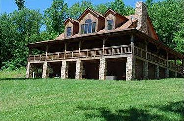 This 3BR home was crafted from locally harvested wood & stone. It is 38 wooded, mountain acres surrounding it. Home features a wrap-around porch, hickory cabinets in the kitchen, cathedral ceiling in LR with georgeous stone fireplace