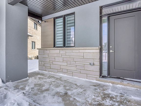 Custom built in 2023 , this exceptional home sits on a premium walkout lot. Beautifully designed home by Ridgeview Homes nestled in the sought-after Stonecliffe community in Doon South, Kitchener, this home offers convenient access to Highway 401, scenic walking trails, parks, schools, shopping centers, and restaurants. This 2,485 sq. ft. single-detached home offers 4 bedrooms,3 bathrooms, and spacious, thoughtfully designed interiors. A modern open-concept layout, seamlessly connecting the kitchen, dining area, and living room. The kitchen features a stylish island with a double sink and an extended bar top, creating the perfect space for entertaining. Large windows throughout flood the space with natural light, while the dining area boasts a 8-foot patio door with great views of the backyard. Upstairs, the primary bedroom is a true retreat, featuring a soaring cathedral ceiling, a spacious walk-in closet, and a luxurious spa-like ensuite with over-sized walk-in shower. A standout feature is the private balcony with glass railings. The unfinished basement with almost 9 ft ceiling and 8 ft patio door provides endless possibilities, with a 3-piece rough-in already in place.