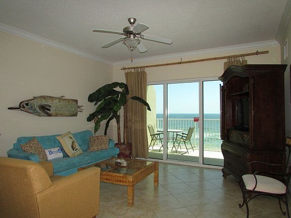 Utterly beautiful gulf front condo in beloved Complex in Gulf Shores. Tile, granite, crown molding, stainless appliances appoint this custom decorated unit. Panoramic, unobstructed views of the emerald gulf waters & sugar white sand. Perfect height, Just one floor up from the parking deck, which gives unit an extra large balcony of 270+/-sf gulf front balcony. In/out pool, workout rm,sauna,game rm
