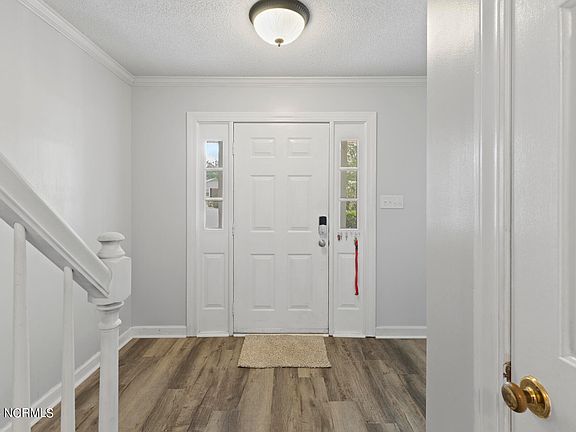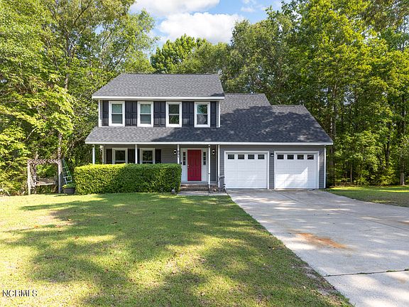 This recently updated home offers four bedrooms and two and a half baths, with brand new floors and fresh paint throughout. It features a charming cast iron wood-burning fireplace from Virginia and is situated on a spacious 1.02-acre lot in a tranquil cul-de-sac with a tree-lined backyard. The home includes a 2-car garage and an updated kitchen with glass backsplash, stainless steel appliances, and a pantry. Roof and vinyl siding were replaced in 2019, ensuring durability and curb appeal. All windows were replaced in 2014, ensuring energy efficiency and ample natural light. Centrally located near schools, shopping, military bases, and beaches, this home combines comfort with convenience for modern living. Don't miss your chance to call 931 Welsh Lane your new home!