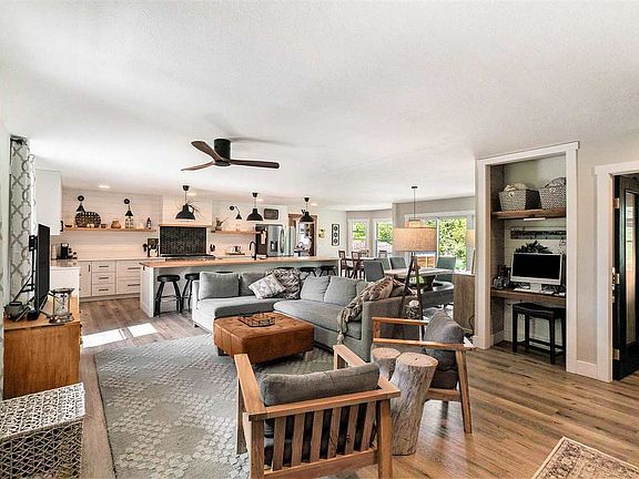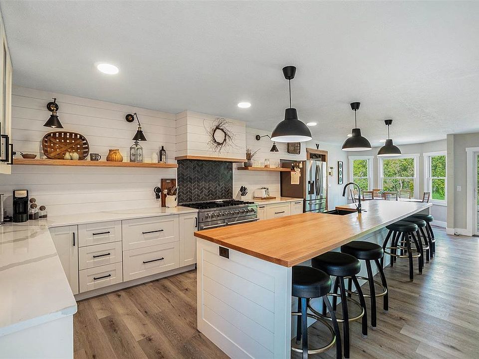 This beautifully remodeled one-story home is a showstopper—inside and out. The centerpiece is an epic kitchen designed to impress, featuring a massive 15-foot solid wood island, 8-burner natural gas stove, beverage fridge, and endless counter space. Whether you're a gourmet chef or just love to entertain, this space delivers. The open-concept layout is filled with natural light and thoughtfully designed for modern living. The living and dining areas flow seamlessly onto a spacious back deck—ideal for hosting summer gatherings in the large, private yard. The primary suite offers generous closet space and a spa-like bath complete with a freestanding soaking tub, large step-in shower, and a stylish double vanity. Every upgrade was made with comfort and function in mind, including a fully encapsulated crawl space with transferrable warranty for peace of mind. Tucked away on a quiet dead-end street and just steps from the Avalanche Preserve, you’ll enjoy year-round outdoor adventure—mountain biking, hiking, stunning views, and even winter skating. Just a short walk to downtown Boyne City and a quick drive to Boyne Mountain, this location offers the best of Northern Michigan living. Whether you're looking for a full-time residence or an easy-to-maintain getaway, this home checks all the boxes.